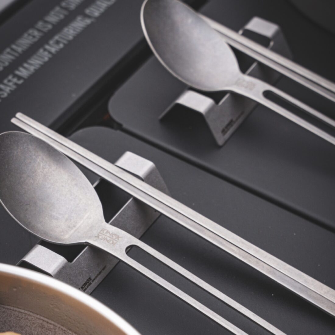 จัดระเบียบและเพิ่มความสะอาดให้โต๊ะอาหารแคมป์ปิ้งของคุณด้วยที่วางช้อนส้อมและตะเกียบ จาก KINOX ที่มาพร้อมดีไซน์เรียบง่ายสไตล์มินิมอล ผลิตจากสแตนเลส STS304 คุณภาพสูง ทำให้มีความแข็งแรงทนทาน หรูหรา และถูกสุขอนามัย เหมาะสำหรับวางชุดช้อนส้อมและตะเกียบของคุณให้เป็นระเบียบและไม่สัมผัสกับพื้นผิวโดยตรง