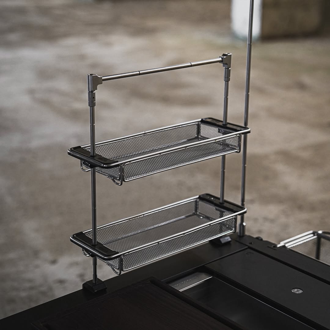 รายละเอียด : ราวแขวน DOUBLE HANGER ออกแบบมาเพื่อให้ติดตั้งง่ายบริเวณด้านนอกของโต๊ะ IGT โดยใช้ MULTI CLAMPS ช่วยขยายพื้นที่ใช้งานของโต๊ะ พร้อมเพิ่มตัวเลือกในการจัดเก็บและแขวนอุปกรณ์ต่างๆ เมื่อใช้งานร่วมกับ MESHGUARD TRAYS จะช่วยเพิ่มประสิทธิภาพในการจัดระเบียบอุปกรณ์ทำครัวและอุปกรณ์ขนาดเล็กได้อย่างลงตัว มอบความสะดวกสบายและการใช้งานที่หลากหลายสำหรับการตั้งแคมป์ มาพร้อมถุงเก็บเฉพาะสำหรับพกพาและจัดเก็บง่าย