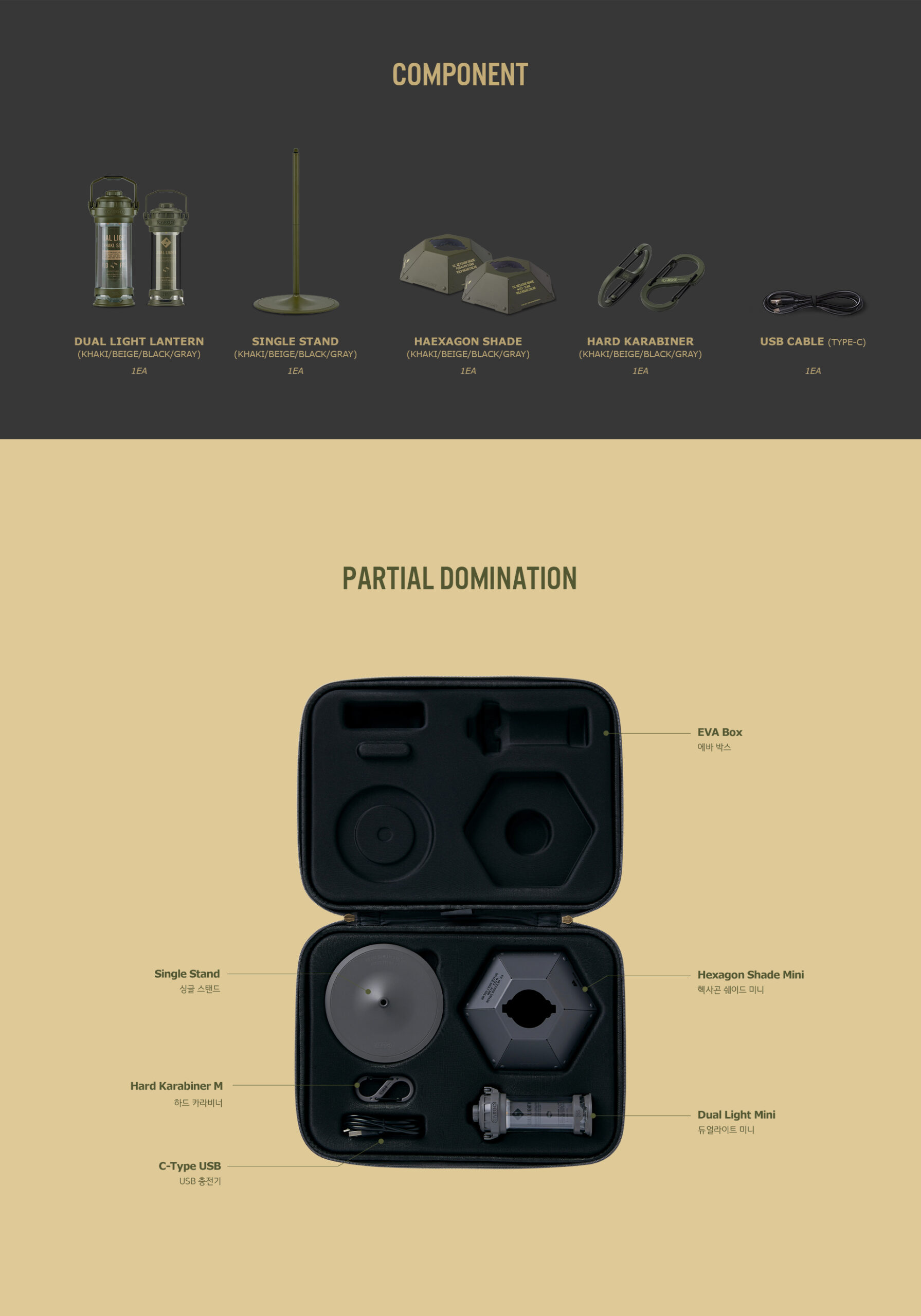 อุปกรณ์ที่ได้รับ : Dual Light Mini,Single Stand,Hexagon Shade,Hard Karabiner,usb,กระเป๋าจัดเก็บ Eva