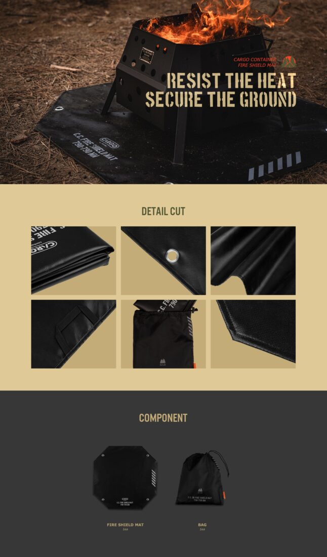 หมดกังวลเรื่องพื้นหญ้าหรือลานกางเต็นท์เสียหายจากการก่อกองไฟด้วย CC Fire Shield Mat แผ่นรองกันไฟระดับพรีเมียมจากแบรนด์ Cargo Container ไอเทมสำคัญที่สายแคมป์ปิ้งต้องมี ออกแบบมาเพื่อใช้งานร่วมกับเตาผิง (Fire Pit) หรือเตาฟืน ช่วยป้องกันสะเก็ดไฟ ความร้อน และเถ้าถ่านที่อาจทำลายพื้นผิวด้านล่างได้อย่างมีประสิทธิภาพ