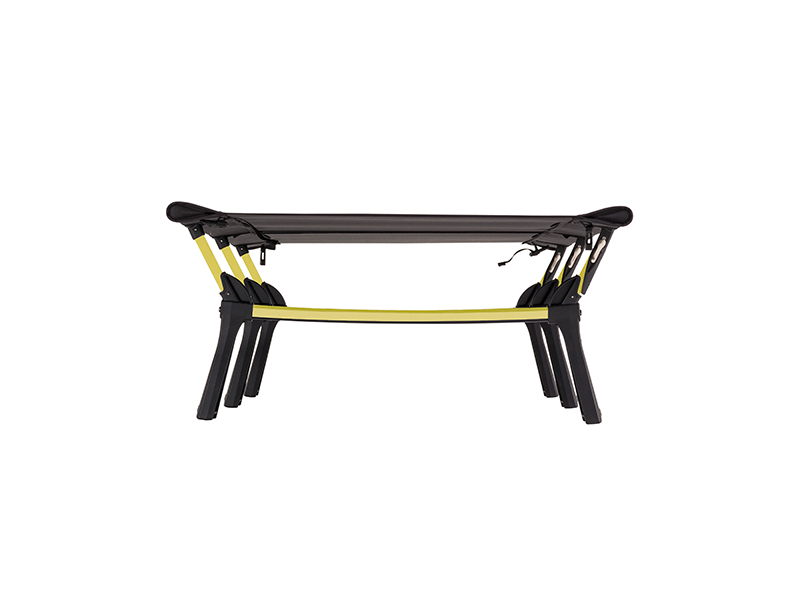 J.cot ยังมีความสามารถในการเชื่อมต่อหลายเตียงเข้าด้วยกันด้วยสายรัดด้านล่าง ทำให้มั่นคงไม่แยกจากกัน วัสดุของเตียงทำจากโพลีเอสเตอร์ 900D w/r PU ที่แข็งแรง ทนทาน และกันน้ำ ไม่ยืดตัวแม้ใช้งานเป็นเวลานาน เสา DAC คุณภาพสูง Th72m ช่วยลดน้ำหนักและเพิ่มความทนทาน นอกจากนี้ ด้านล่างของเตียงยังมีวงแหวน TPU 8 วงสำหรับการขยายอุปกรณ์เสริมในอนาคต