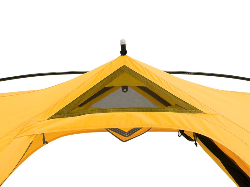 จุดเด่นอีกอย่างคือโครงสร้าง TR (Tension Ridge) และ Horn ที่ช่วยยกความสูงของทางเข้าให้สูงกว่าส่วนกลาง พร้อมผนังเต็นท์ที่เกือบตั้งฉากทั้งสี่ด้าน เพิ่มพื้นที่ใช้สอยภายในให้มากขึ้น เข้า-ออกได้สะดวก และมอบทัศนียภาพที่เปิดโล่งสบายตา อีกทั้งยังออกแบบให้มีช่องระบายอากาศที่จุดสูงสุดทั้งสี่มุม ช่วยลดความชื้น ลดการควบแน่นภายในเต็นท์ ทำให้คุณพักผ่อนได้อย่างเต็มที่ตลอดทั้งคืน
