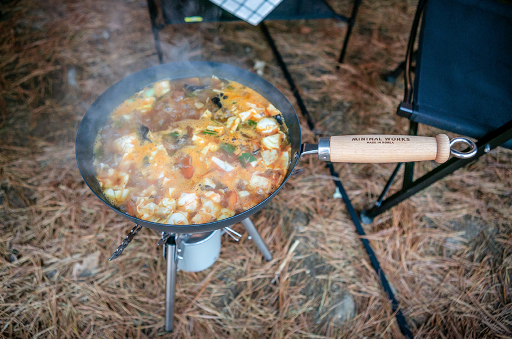 กระทะเหล็ก ด้ามจับไม้ ถอดเก็บได้ /นำความร้อนที่ดีเยี่ยม กระทะก้นลึก จึงทำอาหารได้หลากหลาย