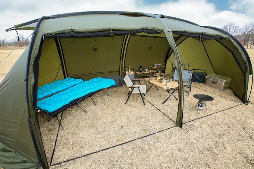 รายละเอียด : Minimal works V-House L เป็น Shelter ทรงอุโมงค์สุดคลาสสิก ให้อารมณ์แนวทหาร ขนาดใหญ่เหมาะสำหรับ 3-4 คน ตัว Shelter สามารถเปิดได้รอบด้าน