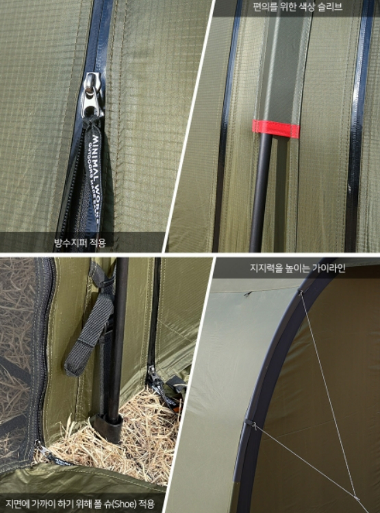 – Shelter : SKIN-Nylon40D Ripstop waterproof (2,000mm)