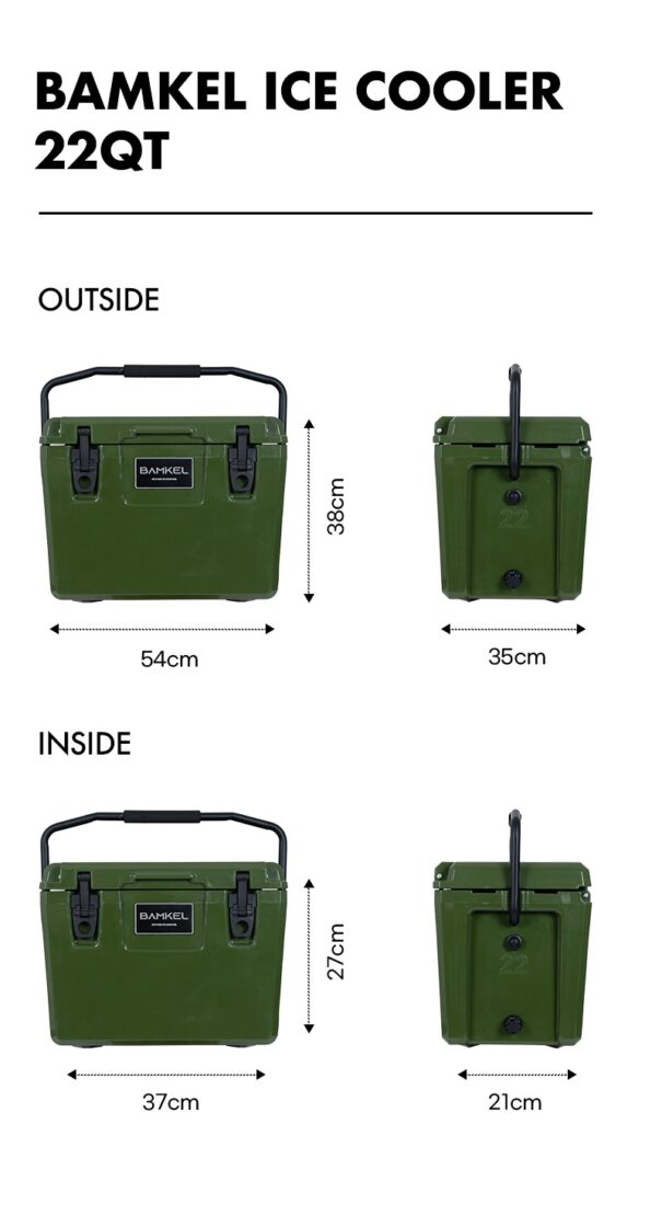 BAMKEL Modern 22QT กระติกน้ำแข็งขนาด 22QT แข็งแรง ทนทาน เก็บความเย็นได้นานถึง 120 ชั่วโมง กระติก Bamkel ผลิตขึ้นด้วยกระบวนการ Rotomold กระบวนการนี้สร้างการออกแบบชิ้นเดียวที่ทนทานโดยไม่มีตะเข็บหรือรอยต่อ ซึ่งทำให้การผลิตแบบ rotomold ทนทานต่อแรงกระแทก รังสียูวี อุณหภูมิที่รุนแรง และยังเป็นที่รู้จักในด้านคุณสมบัติการเป็นฉนวนที่ยอดเยี่ยม ซึ่งสามารถเก็บน้ำแข็งและเครื่องดื่มให้เย็นได้เป็นเวลานาน มาพร้อมตะกร้า และฉากกั้น ใช้งานได้สะดวกยิ่งขึ้น