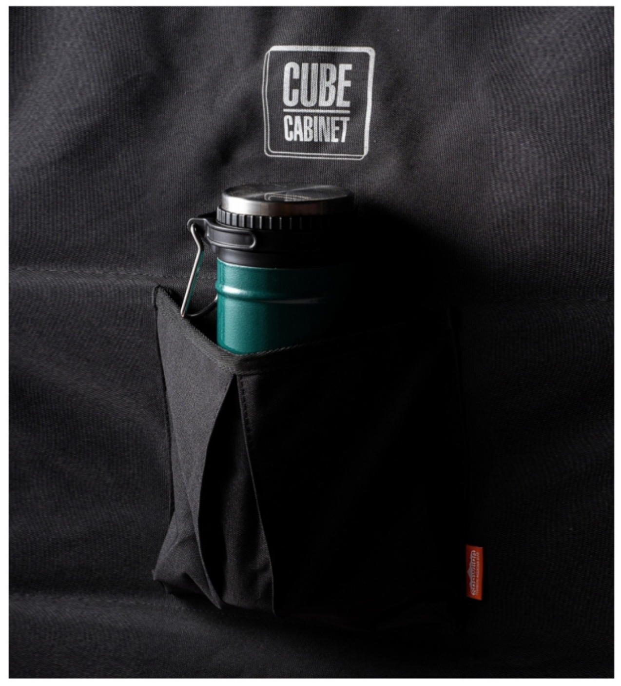 ชั้นวางอุปกรณ์ทำอาหารพับเก็บได้ มีประตูเปิดปิดกันแมลง ผ้าใบกันน้ำ น้ำหนักเบาพกพาสะดวก เป็นโต๊ะในตัวและยังมีช่องใส่กระติกน้ำอีกด้วย รับน้ำหนักได้ 15 กิโลกรัม