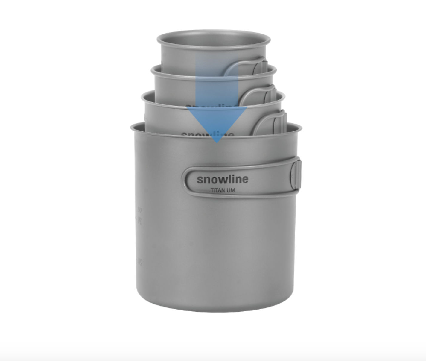 หม้อไทเทเนียม จาก snowline ขนาดความจุ 1250 มล. น้ำหนักเบา แข็งแรง มาพร้อมฝาปิด สามารถใช้กับไฟแก๊สหรือกองไฟได้