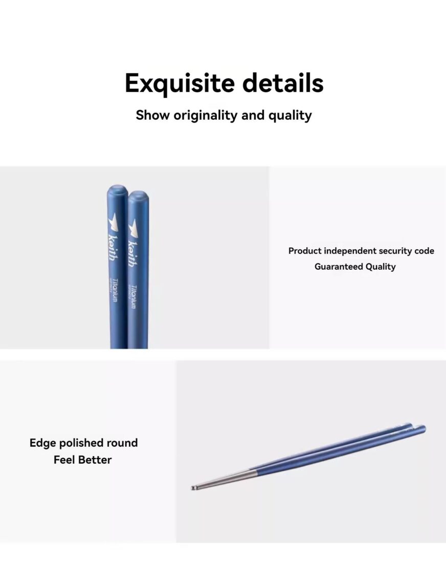 รายละเอียด : ตะเกียบไทเทเนียม Keith TI5662 เป็นตัวเลือกที่สมบูรณ์แบบสำหรับผู้ที่ต้องการอุปกรณ์รับประทานอาหารที่ทนทาน ปลอดภัย และใช้งานง่าย ออกแบบให้มีลักษณะกลวงเพื่อลดน้ำหนักและเพิ่มความสะดวกสบายในการจับ ถือใช้งานง่าย ช่วยให้หยิบอาหารได้อย่างคล่องตัว ผลิตจากไทเทเนียมคุณภาพสูงที่มีความทนทานเป็นพิเศษ ไม่เป็นสนิม และปราศจากสารเคลือบที่เป็นอันตรายต่อสุขภาพ นอกจากนี้ วัสดุไทเทเนียมยังช่วยป้องกันริมฝีปากจากความร้อนเมื่อใช้กับอาหารร้อน และไม่ติดริมฝีปากแม้ในสภาพอากาศหนาวเย็น