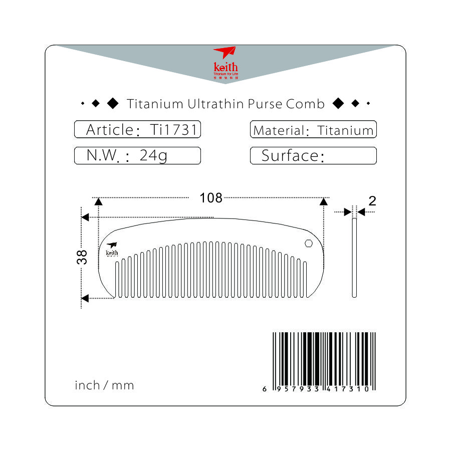 รายละเอียด : หวีไทเทเนียม Keith ทรงเหลี่ยม รหัส Ti1731 น้ำหนักเบาเพียง 24 g