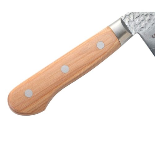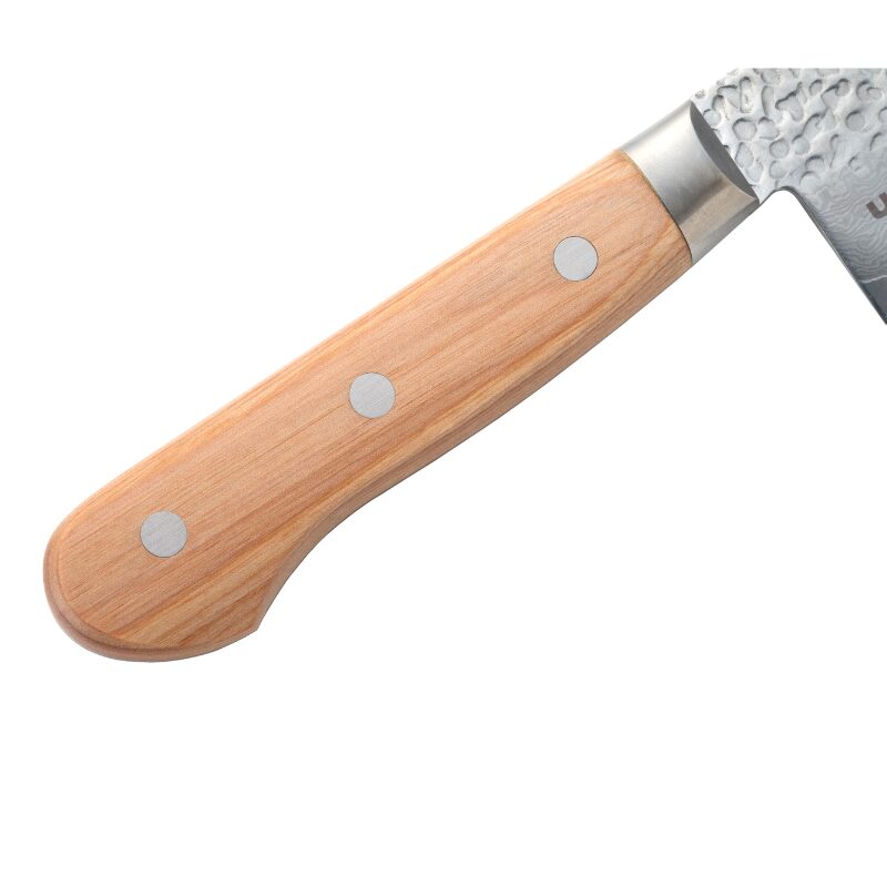 แกนเหล็ก VG10 ระดับพรีเมียม : หัวใจหลักของใบมีดผลิตจากเหล็กสเตนเลส VG10 ที่มีส่วนผสมของคาร์บอน โคบอลต์ และวานาเดียมสูง ช่วยรักษาความคมได้ยาวนาน ทนทานต่อการสึกหรอ หั่นได้อย่างเฉียบคมและแม่นยำ