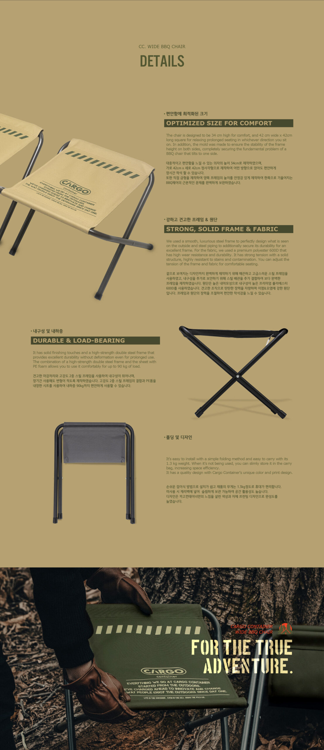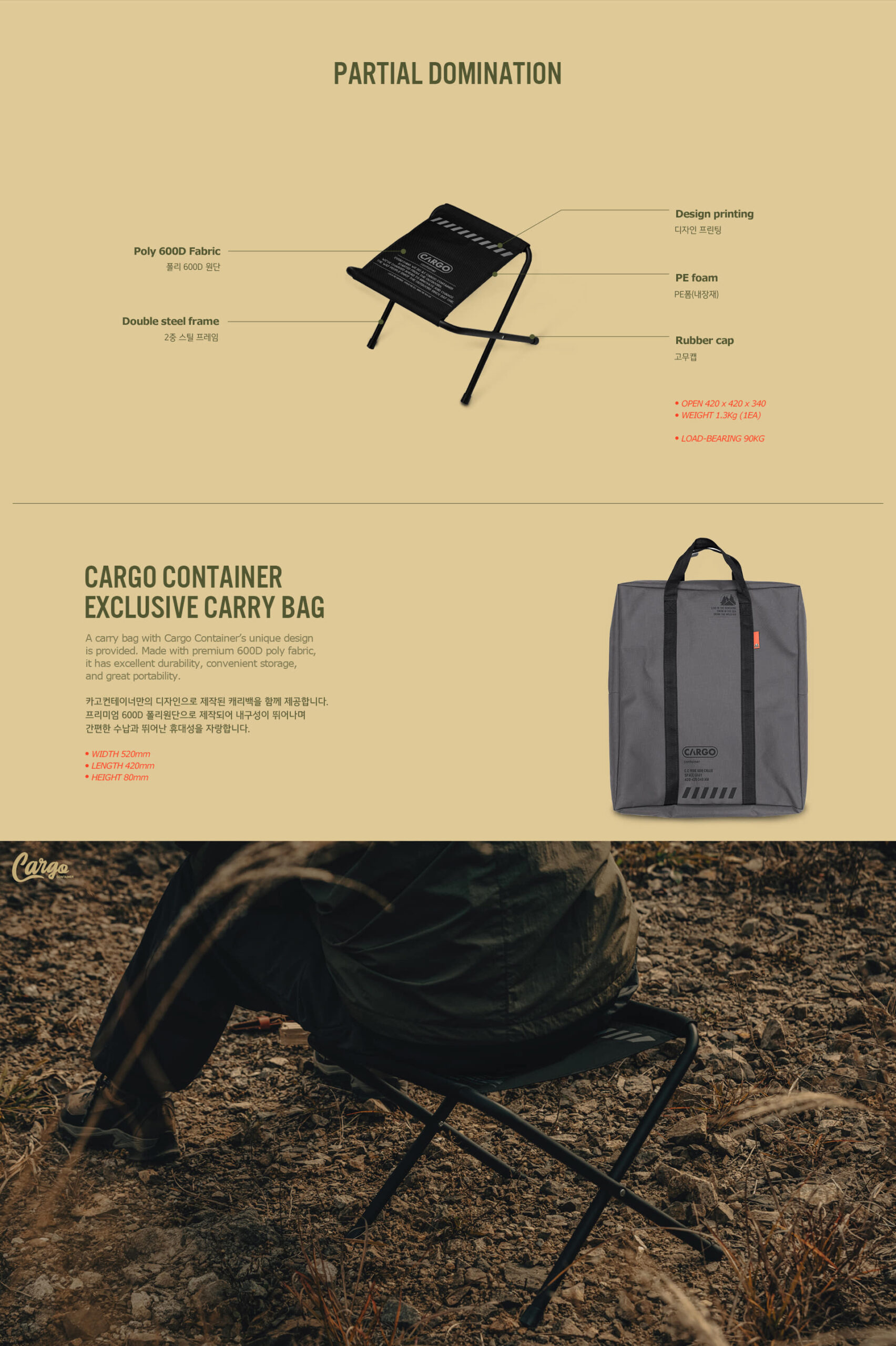 รายละเอียด : Wide BBQ Chair เก้าอี้ปิกนิกจากแบรนด์ Cargo Container ประเทศเกาหลี ตัวเล็ก พกพาง่าย แต่ด้วยขนาดผ้าที่กว้างทำให้นั่งสบาย ใช้วัสดุโพลี 600D อย่างหนา บุโฟม PE ด้านในทำให้มีความรู้สึกนุ่มในการนั่ง แข็งแรงทนทาน สามารถใช้เป็นเก้าอี้วางเท้า วาง Cooler Box หรือลังเก็บของอเนกประสงค์ได้ รับน้ำหนักได้มากถึง 90 กิโลกรัม มาพร้อมกระเป๋าสำหรับจัดเก็บอย่างดี