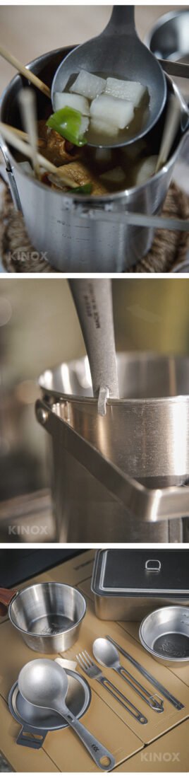 ยกระดับการทำอาหารในแคมป์ด้วย Kinox Camping Ladle กระบวยและช้อนเสิร์ฟอเนกประสงค์ที่ถูกออกแบบมาเพื่อชาวแคมป์โดยเฉพาะ โดดเด่นด้วยการใช้วัสดุระดับพรีเมียม Stainless Steel 316 (STS316) ซึ่งเป็นสแตนเลสเกรดสูงสุดที่นิยมใช้ในเครื่องมือแพทย์และอุตสาหกรรมอาหารระดับสูง มีคุณสมบัติทนทานต่อการกัดกร่อนจากเกลือและความร้อนได้ดีเยี่ยมกว่าสแตนเลสทั่วไป