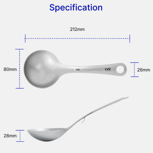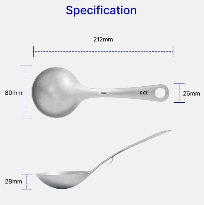 ด้วยดีไซน์ที่เน้นความมินิมอลแต่แฝงไปด้วยความดิบในสไตล์อินดัสเทรียล ตัวผิวสัมผัสมีความเป็นเอกลักษณ์ (Vintage Look) แข็งแรง ทนทาน และมีขนาดที่พอเหมาะสำหรับการปรุงอาหารหรือตักเสิร์ฟในหม้อแคมป์ปิ้ง มาพร้อมรูที่ปลายด้ามสำหรับแขวนจัดเก็บกับชุดเครื่องครัวแคมป์ปิ้งได้อย่างสะดวก