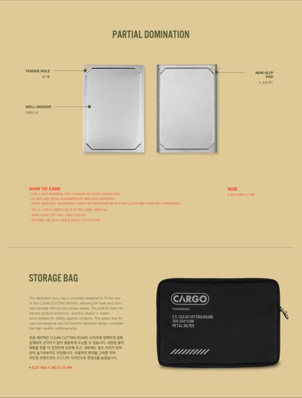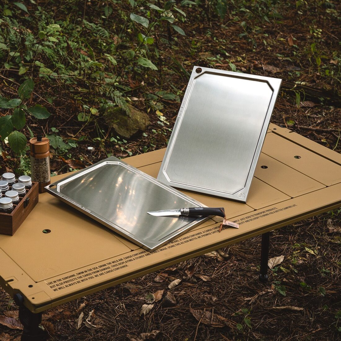 ยกระดับการทำอาหารในแคมป์ด้วย CC CLEAN CUTTING BOARD จากแบรนด์ Cargo Container เขียงสเตนเลสสตีลคุณภาพสูงที่ออกแบบมาอย่างพิถีพิถัน โดดเด่นด้วยดีไซน์ที่สามารถใช้งานร่วมกับโต๊ะระบบ IGT (Iron Grill Table) ได้อย่างลงตัว ไม่ว่าจะใช้หั่นวัตถุดิบ รองภาชนะร้อน หรือใช้เป็นถาดเพลตสำหรับเสิร์ฟอาหาร (Plating) ก็ทำได้สวยงามกลมกลืน พร้อมรับจบทุกมื้ออร่อยกลางแจ้งของคุณ