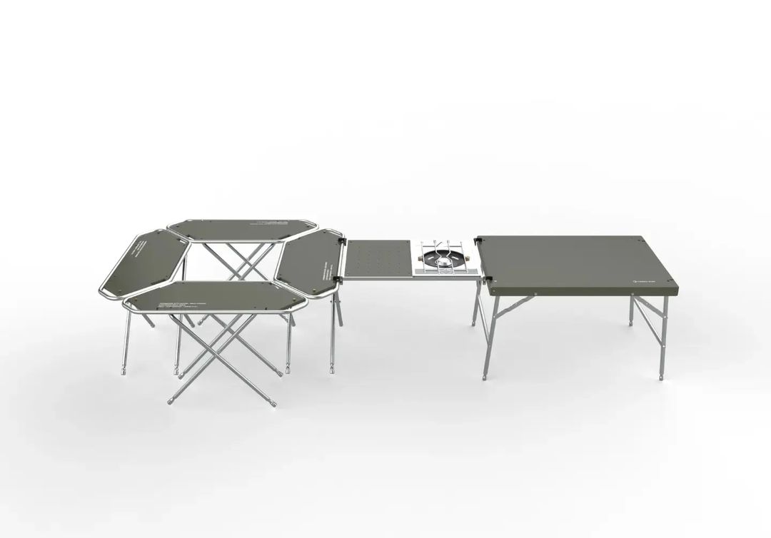 รายละเอียด Lands table โต๊ะแคมป์ปิ้งที่สามารถใช้งานได้หลายวิธีขึ้นอยู่กับการจัดของผู้ใช้งาน ฟังก์ชั่นการทำงานและการออกแบบที่สามารถพบได้ใน Commanine มีน้ำหนักเบาโดยการใช้อลูมิเนียมที่แผ่นปิดด้านบน โครง และขา ตัวอักษรแกะสลักที่ด้านข้างช่วยเพิ่มความรู้สึกหรูหรา นอกจากนี้ ยังสามารถติดตั้งขายึดในช่องว่างระหว่างโครงและเพลทด้านบนเพื่อเชื่อมต่อโต๊ะเข้าด้วยกันได้