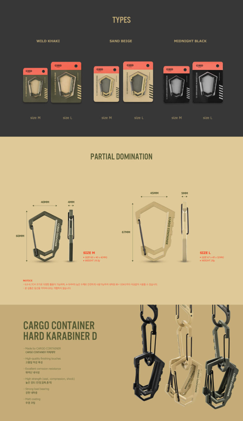 รายละเอียด : HARD KARABINER D สร้างสรรค์โดยผสมผสานดีไซน์ของ Cargo Container เข้ากับดีไซน์อันโดดเด่นของคาราบิเนอร์ คาราบิเนอร์รูปตัว D ทันสมัยใช้งานได้อเนกประสงค์