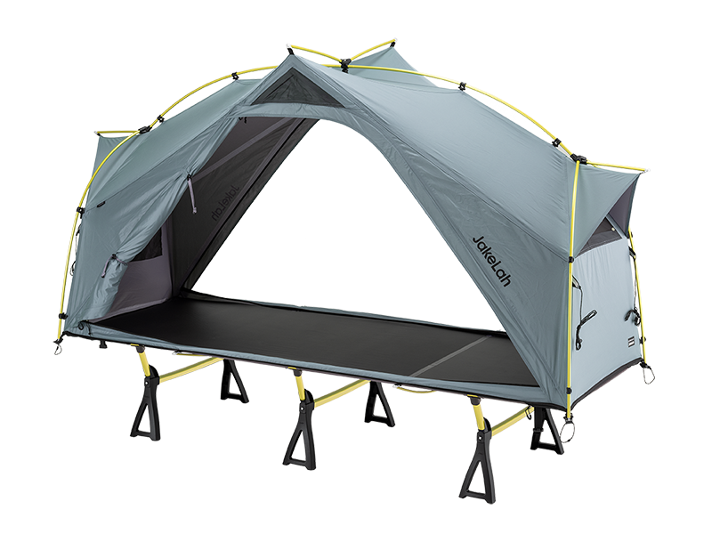 J.cot ยังมีความสามารถในการเชื่อมต่อหลายเตียงเข้าด้วยกันด้วยสายรัดด้านล่าง ทำให้มั่นคงไม่แยกจากกัน วัสดุของเตียงทำจากโพลีเอสเตอร์ 900D w/r PU ที่แข็งแรง ทนทาน และกันน้ำ ไม่ยืดตัวแม้ใช้งานเป็นเวลานาน เสา DAC คุณภาพสูง Th72m ช่วยลดน้ำหนักและเพิ่มความทนทาน นอกจากนี้ ด้านล่างของเตียงยังมีวงแหวน TPU 8 วงสำหรับการขยายอุปกรณ์เสริมในอนาคต