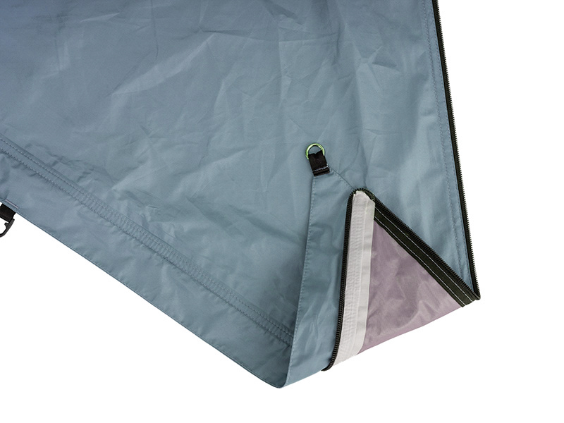 วัสดุ : ผ้า 3 ชั้น (ผ้าด้านล่าง: 70D N/T PU 2,000 มม , เสาเต็นท์: DAC NFL 9.3 + PF 7.5 ซิป : YKK No.5