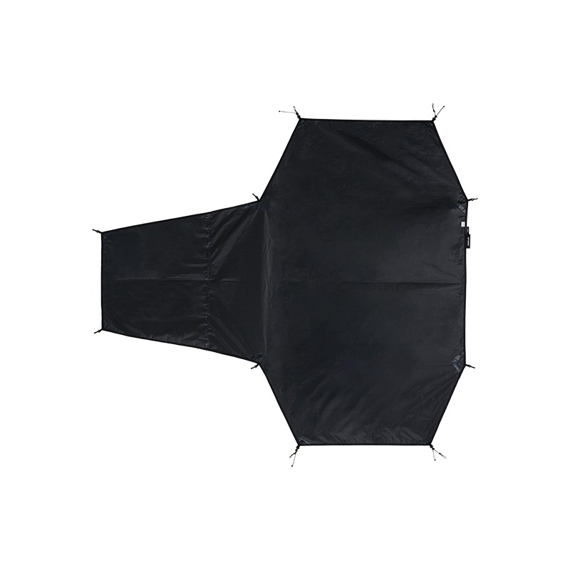 - จุดเด่นที่แตกต่างจาก Footprint ทั่วไป คือขนาดความกว้างที่ออกแบบมาให้ยื่นออกมาคลุมพื้นดินบริเวณ Vestibule (พื้นที่หน้าประตู) ช่วยให้คุณวางเป้ รองเท้า หรืออุปกรณ์ทำอาหารได้โดยไม่เปื้อนดินและไม่ชื้น แม้พื้นดินจะเปียกแฉะ
