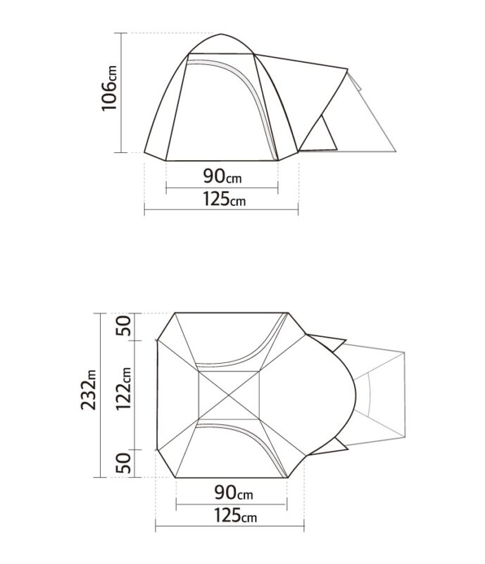- Expanded Living Space: เพิ่มพื้นที่ส่วนหน้า ขนาดกว้างขวาง (232 x 125 ซม.) ให้คุณมีพื้นที่แห้งสำหรับวางรองเท้า เป้เดินทาง หรือตั้งวงกาแฟยามเช้า ช่วยให้ภายในเต็นท์สะอาดและเป็นระเบียบ
