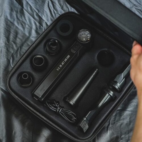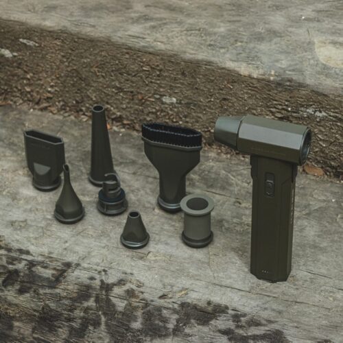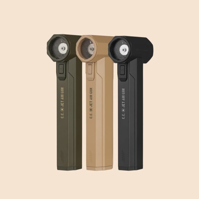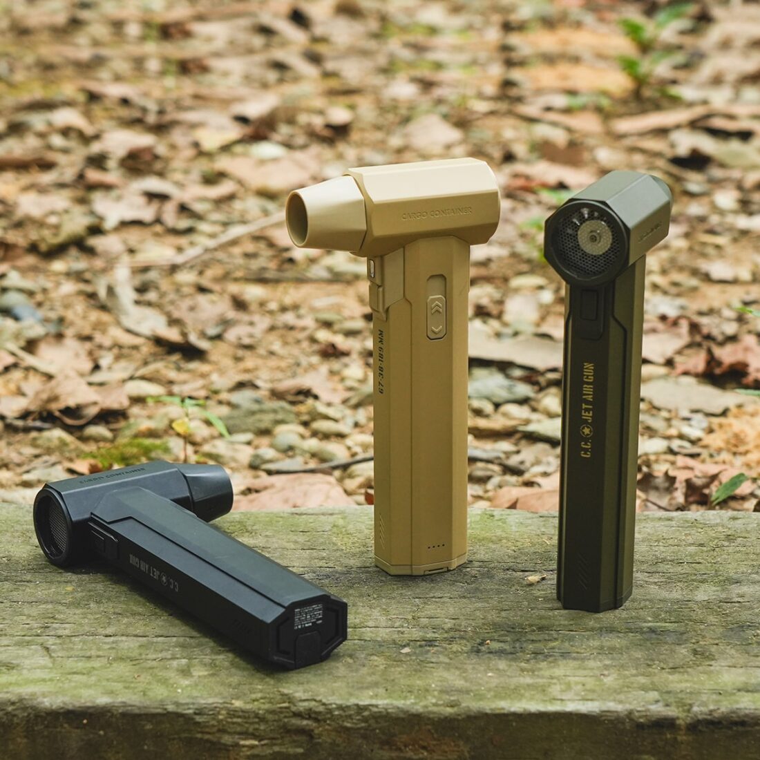 CC JET AIR GUN ปฏิวัติวงการอุปกรณ์แคมป์ปิ้งด้วยเครื่องเป่าลมพกพาประสิทธิภาพสูงจาก Cargo Container ที่มาพร้อมดีไซน์ Tactical สุดเท่และวัสดุเกรดพรีเมียม โดดเด่นด้วยพลังลมที่รุนแรงจากมอเตอร์ BLDC ความเร็วสูงถึง 130,000 RPM (รอบต่อนาที) ทำให้สามารถใช้งานได้หลากหลายสถานการณ์ ไม่ว่าจะเป็นการเป่าฝุ่นทำความสะอาดอุปกรณ์แคมป์, ช่วยจุดไฟเตาถ่าน, เป่าลมที่นอนเป่าลม, หรือแม้แต่ใช้เป่าผมและทำความสะอาดรถยนต์ ตัวเครื่องทำจากอลูมิเนียมอัลลอยด์ให้ความรู้สึกแข็งแรง ทนทาน และหรูหรา มาพร้อมหัวเปลี่ยน (Nozzle) ถึง 8 แบบ เพื่อตอบโจทย์ทุกการใช้งานได้อย่างครอบคลุมที่สุด