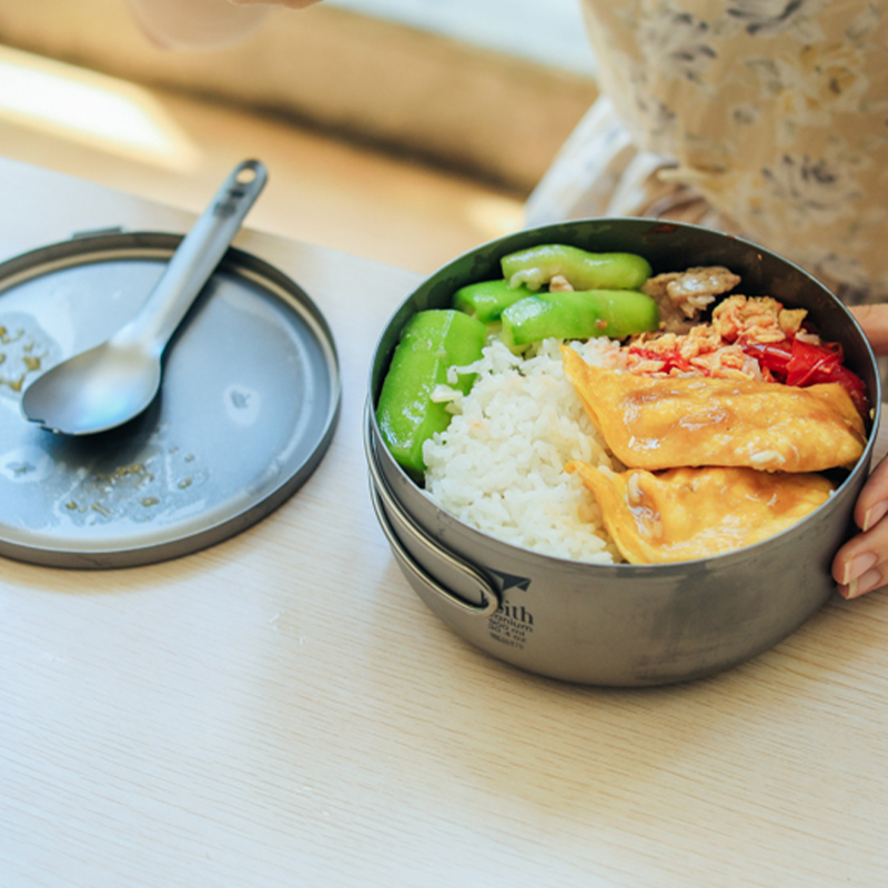 รายละเอียด : กล่องข้าวไทเทเนียม จาก Keith พร้อมฝาปิด ออกแบบมา 3 ขนาดคือ 800 ml , 1000 ml และ 1200 ml ผลิตจากโลหะไทเทเนียม น้ำหนักเบา ที่กล่องข้าวมีด้ามจับซึ่งผลิตจาก stainless steel ช่วยให้สามารถจับถ้วยได้แม้จะบรรจุของร้อนอยู่ มีฝาปิดที่ออกแบบมาอย่างดี มีช่องด้านข้างที่ออกแบบมาสำหรับให้ใช้ช้อนเกี่ยวเพื่อเปิดฝากล่องได้ สามารถใช้เป็นหม้อประกอบอาหาร หรือใช้เป็นกล่องใส่ข้าว สำหรับเดินทางได้