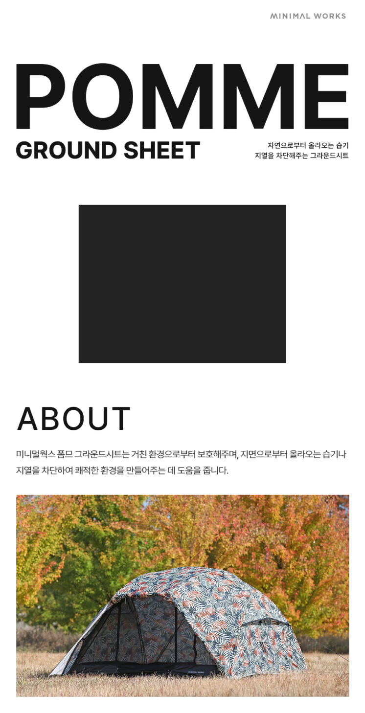 แผ่นรองปูพื้นสำหรับ Minimal Works Pomme สามารถปูครอบคลุมพื้นที่เต็นท์ทั้งหมด ช่วยป้องกันความร้อนความชื้นหรือแมลงได้