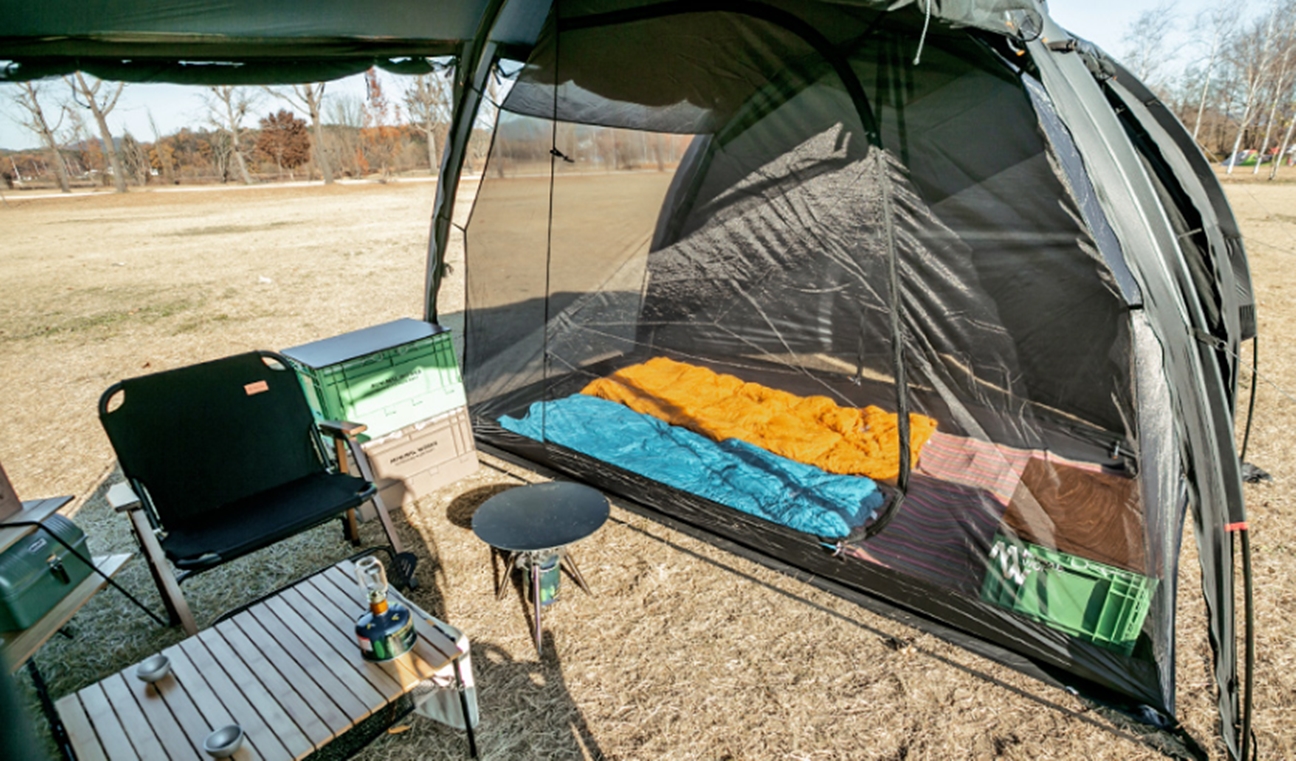 ตัว Shelter มาพร้อมมุงตาข่ายรอบตัวมาให้ Shelter สามารถกางออกได้หลายรูปแบบ เพื่อเพิ่มพื้นที่การใช้งาน สามารถใส่ Inner (จำหน่ายแยก) หรือ Ground sheet ได้