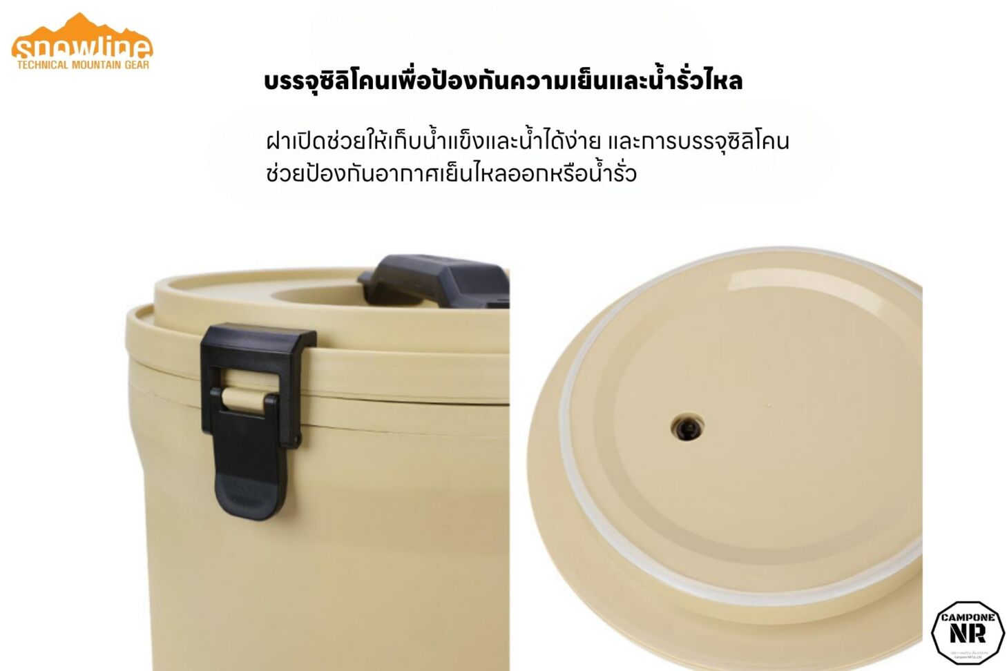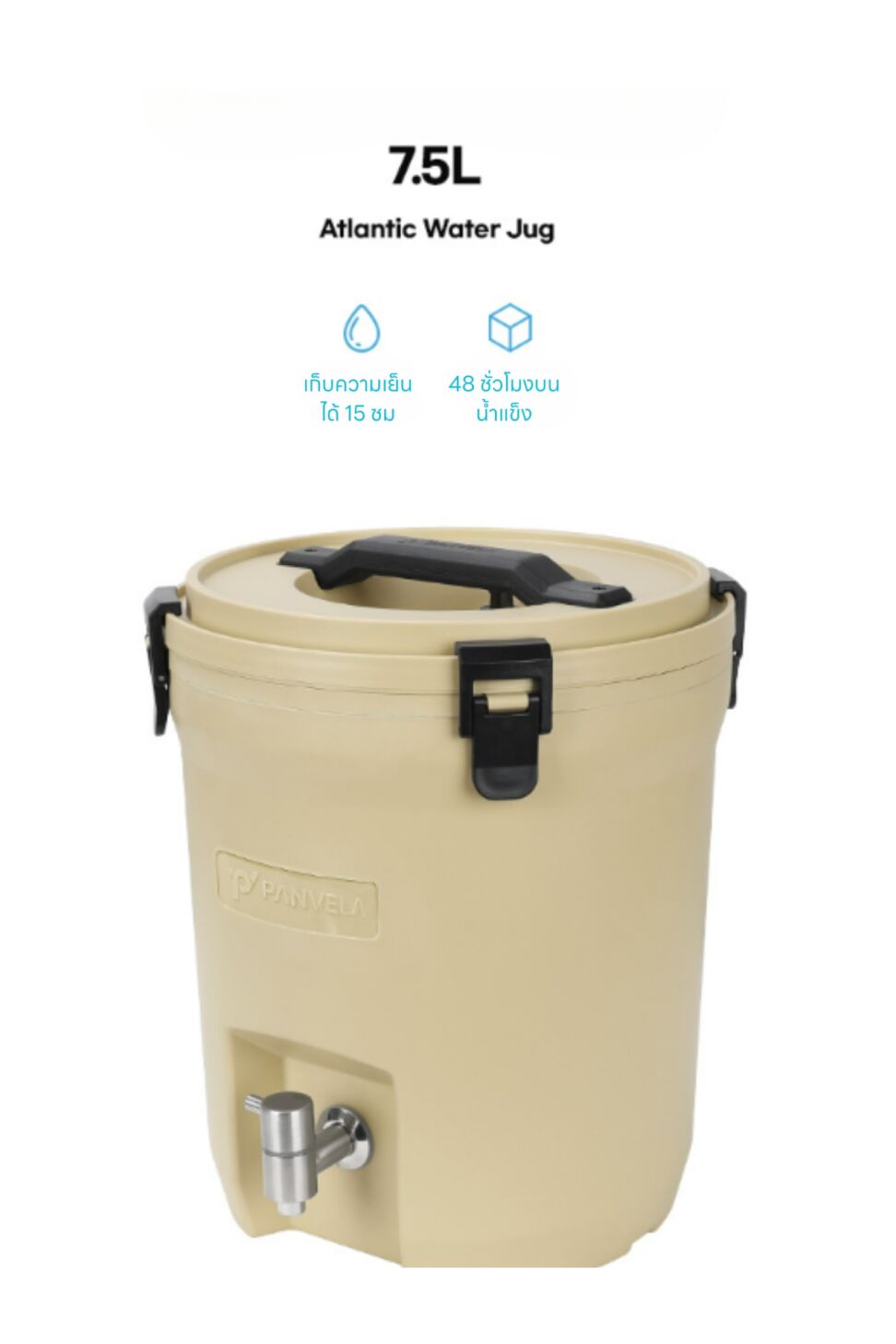 รายละเอียด : Atlantic Water Jug 7.5L ถังสำหรับใส่น้ำดื่ม จาก Snowline แบรนด์ผลิตอุปกรณ์แคมป์ปิ้งชั้นนำจากประเทศเกาหลี ถังน้ำขนาดบรรจุ 7.5 ลิตร มาพร้อมจุกก๊อกน้ำสแตนเลสอย่างดี เก็บความเย็นได้ถึง 15 ชม. และเก็บน้ำแข็งได้นานถึง 48ชม. ฝาปิดเป็นแบบระบบล็อคมาพร้อมยางซิลิโคน ช่วยในการเก็บความเย็นและยังป้องกันการหกของน้ำ ด้านบนฝามีจุกระบายอากาศที่ปรับหมุนได้ โดยปรับอัตราการไหลของน้ำด้วยการหมุนจุกด้านบน