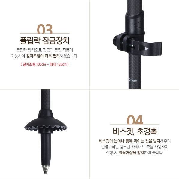 รายละเอียด : ไม้เท้าเดินป่าคาร์บอนที่มีน้ำหนักเบาโดยใช้วัสดุคาร์บอนที่เบาเป็นพิเศษ และพกพาสะดวกด้วยการพับแบบสามตอน ด้วยด้ามจับที่นุ่มนวล ทำให้ไม่เมื่อยล้าแม้ใช้งานเป็นเวลานาน และสายคาดปรับความยาวให้เหมาะกับผู้ใช้เพื่อช่วยให้เดินป่าได้อย่างปลอดภัย ปรับความยาวได้ 105 ซม. ~ สูงสุด 135 ซม.