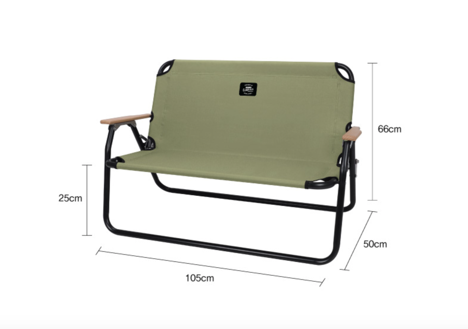 เก้าอี้ยาวพับได้สำหรับ 2ที่นั่ง โครงทำจากอลูมิเนียม ให้น้ำหนักที่เบาแต่แข็งแรง เคลื่อนย้ายและจัดเก็บง่าย รองรับน้ำหนักได้ถึง 100กิโลกรัม วัสดุผ้าทำจากโพลีเอสเตอร์ ที่ทนทาน กันน้ำ และแห้งเร็ว