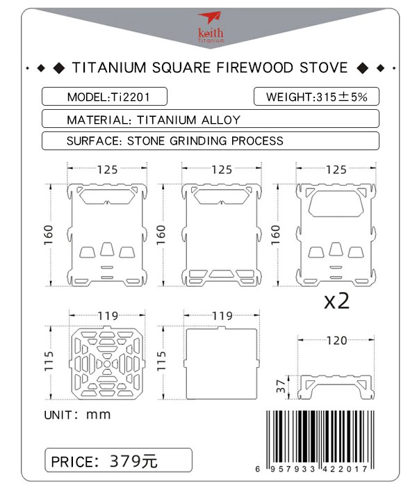ชื่อสินค้า : Titanium Alloy backpacking wood stove Keith Ti2201