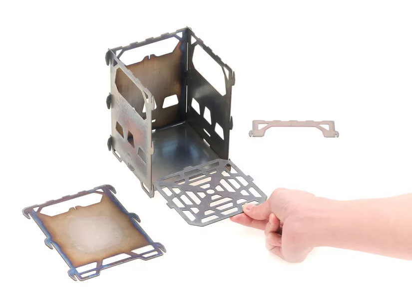 ผลิตจากไทเทเนียมความบริสุทธิ์ 99.9% ทำให้เตามีคุณสมบัติแข็งแรงทนทาน ปลอดภัยไร้สารพิษ ไม่เป็นสนิม และทนต่อการกัดกร่อน รวมถึงสามารถทนความร้อนได้สูงถึง 1600 องศาเซลเซียส โดยไม่เสียรูปแม้โดนความร้อน นอกจากนี้ ไทเทเนียมยังมีความแข็งแรงสูงที่อุณหภูมิ -253 องศาเซลเซียส ทำให้ไม่เเปราะทั้งในอุณหภูมิร้อนและเย็น ขนาดกะทัดรัดและผิวขัดทรายที่หรูหราทำให้เตาเผาไม้นี้เป็นตัวเลือกที่เหมาะสมสำหรับการเดินทางทุกรูปแบบ