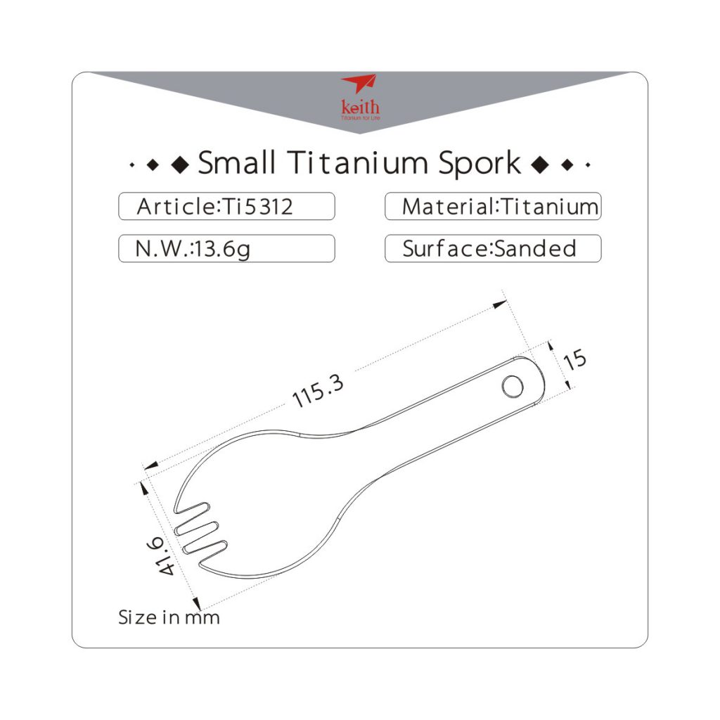 รายละเอียด : ช้อนส้อม Spork แบบสั้น ผลิตจากไทเทเนียม Keith รหัส Ti5312 เป็นช้อนอเนกประสงค์ที่สามารถใช้เป็นช้อน ส้อม ได้ในตัวเดียวกัน ทั้งยังออกแบบให้มีความโค้งเพื่อให้สะดวกในการตักน้ำแกง น้ำหนักเบาเพียง 13.6 g