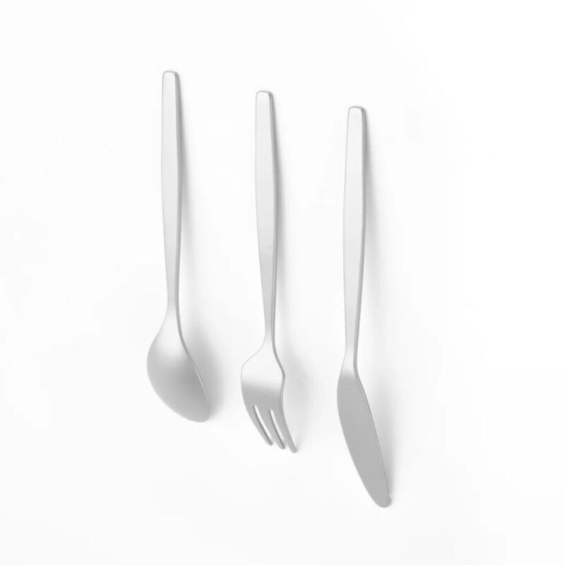 ขนาดใช้งาน : มีด: 147 × 14 × 2.5 มม. , ส้อม: 135 × 17 × 2.5 มม. , ช้อน: 135 × 26 × 2.5 มม.