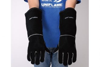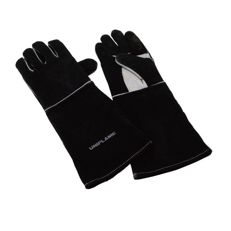 ถุงมือหนังวัวแท้ ปกป้องมือของคุณจากความร้อนสูงเช่นกองไฟและเตาบาร์บีคิว เน้นความปลอดภัยโดยคลุมยาวถึงข้อศอกให้แน่น